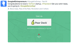 Eleven startups were selected by Google in partnership with best-of-breed co-working spaces and startup accelerators from specific cities. Pear Deck was selected by Google for its final spot in a public call for submissions, rising to the top among a “massive number of competitors.”